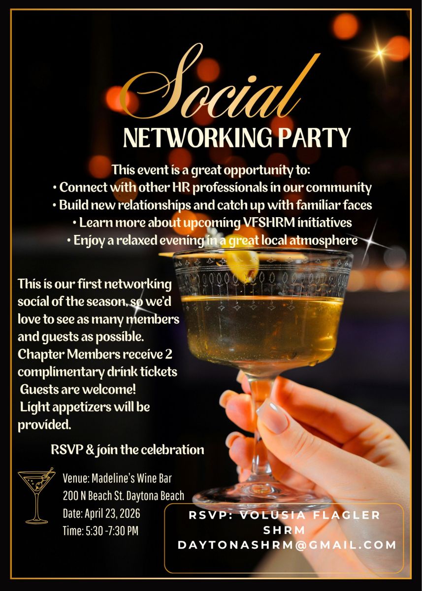 Hope you'll join us for a fun (and free!) Networking Social at Madeline’s Wine Bar in Daytona Beach!